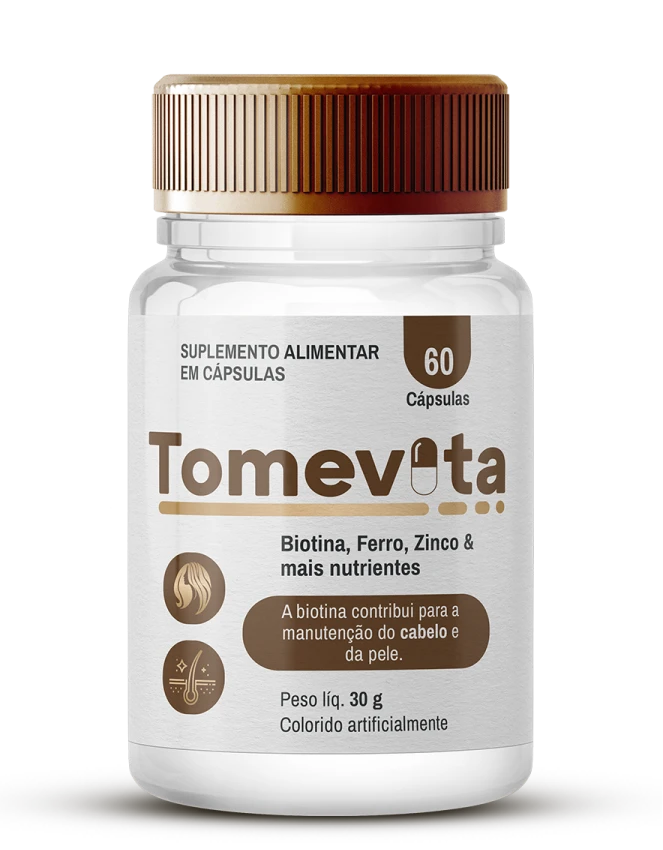 O Tomevita é um suplemento que ajuda a fortalecer cabelos, unhas e pele por meio da reposição de vitaminas e minerais essenciais.